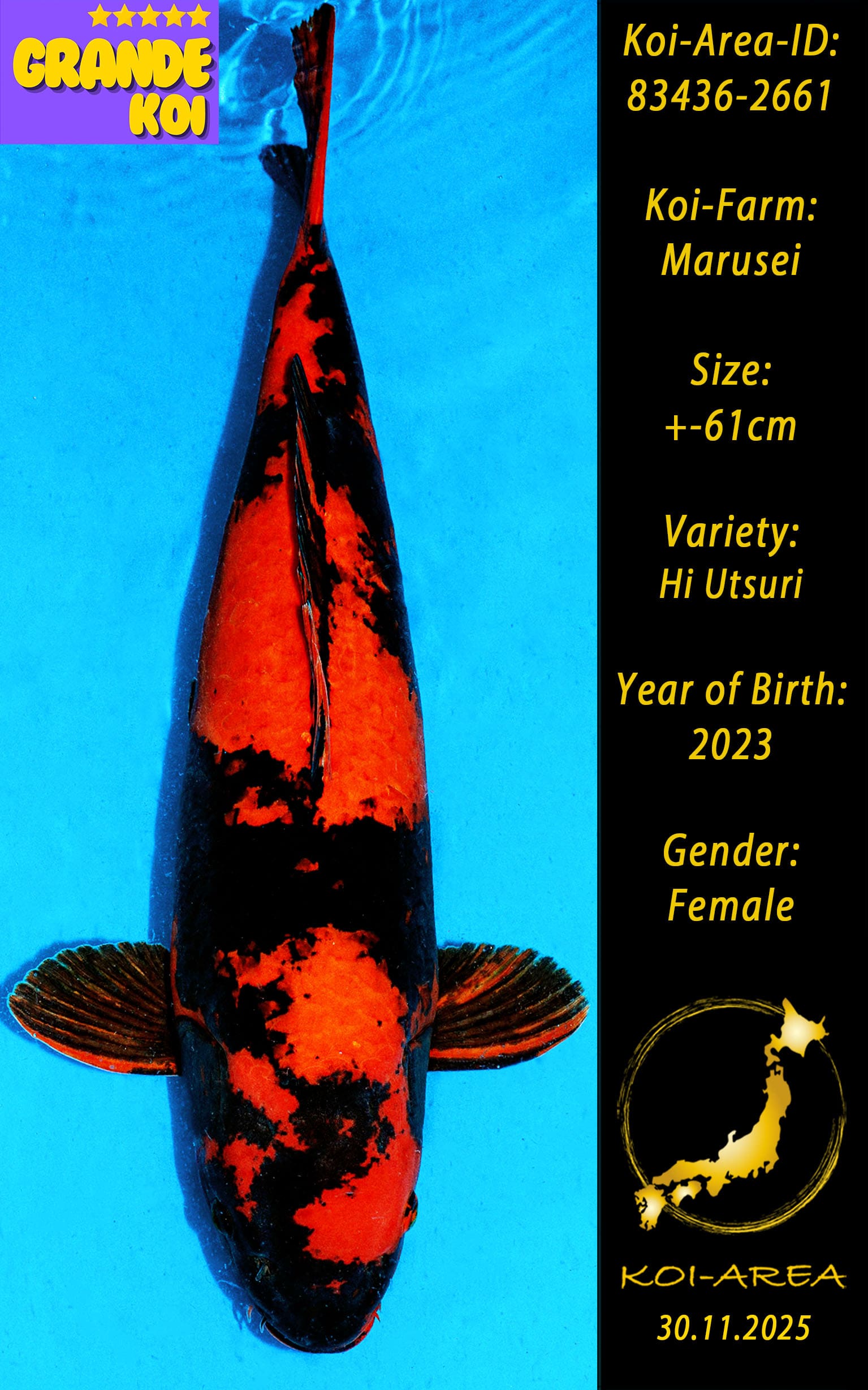 ⚠️ 🚛 🇯🇵 live aus Japan KOI – Dieser Koi schwimmt aktuell noch in Japan. Abhol-/ und Versandtermine für diesen Koi sind ab Anfang April 2026 verfügbar