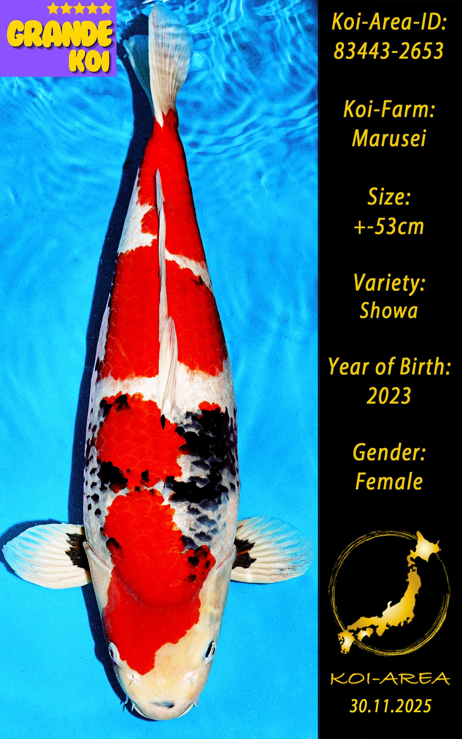 ⚠️ 🚛 🇯🇵 live aus Japan KOI – Dieser Koi schwimmt aktuell noch in Japan. Abhol-/ und Versandtermine für diesen Koi sind ab Anfang April 2026 verfügbar
