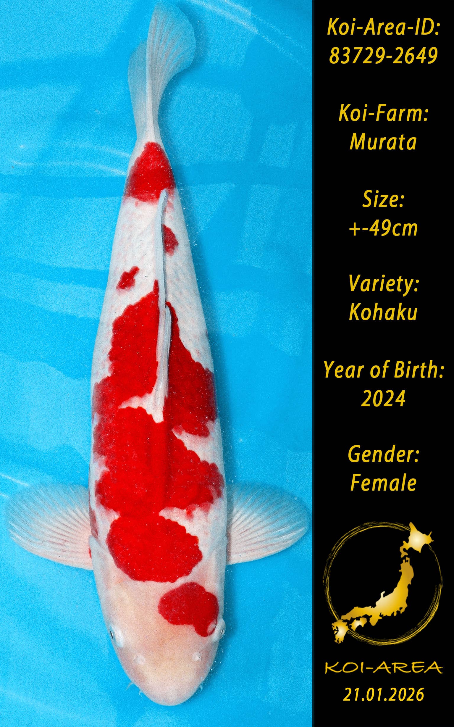 ⚠️ 🚛 🇯🇵 live aus Japan KOI – Dieser Koi schwimmt aktuell noch in Japan. Abhol-/ und Versandtermine für diesen Koi sind ab Anfang April 2026 verfügbar