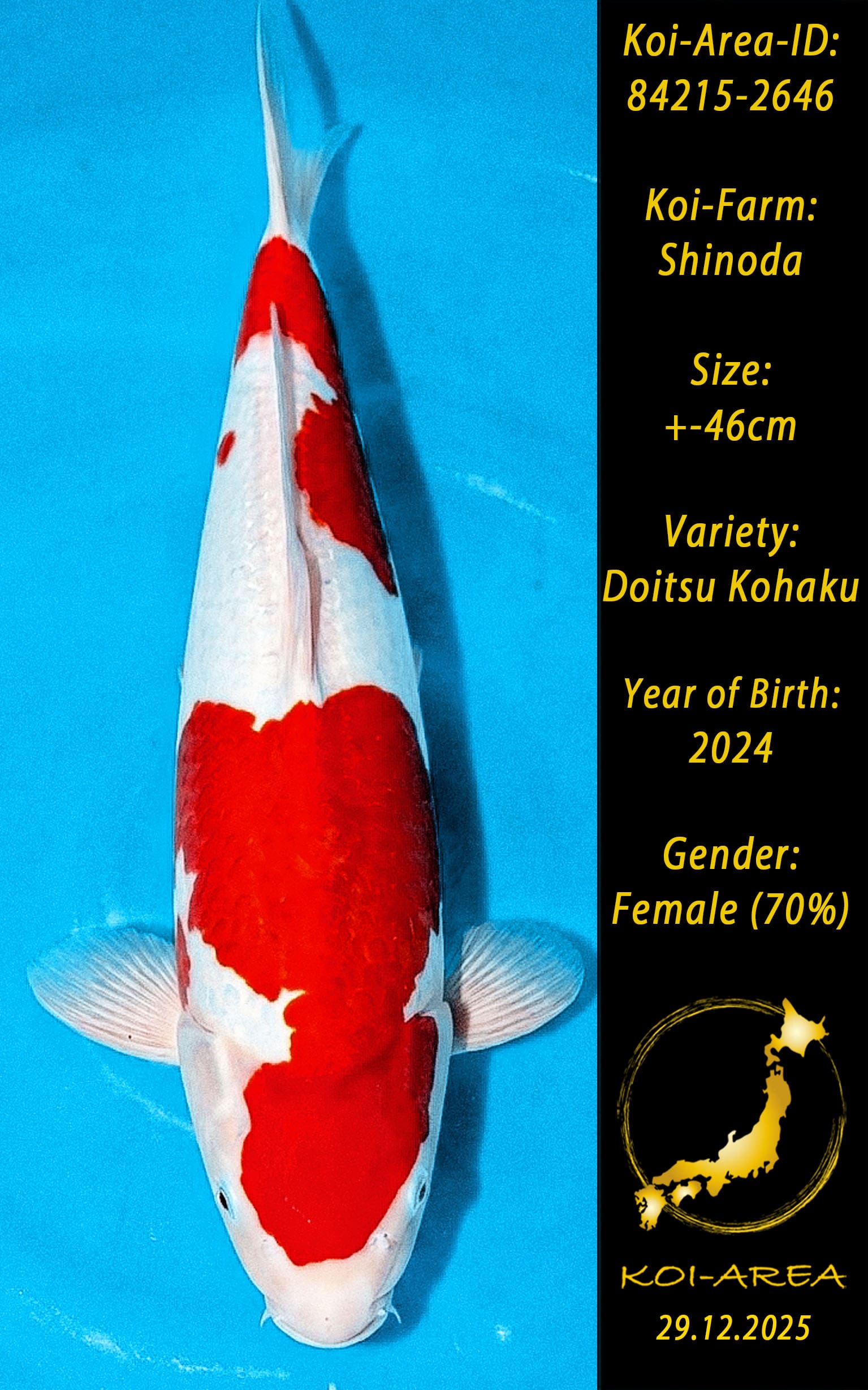 ⚠️ 🚛 🇯🇵 live aus Japan KOI – Dieser Koi schwimmt aktuell noch in Japan. Abhol-/ und Versandtermine für diesen Koi sind ab Anfang April 2026 verfügbar