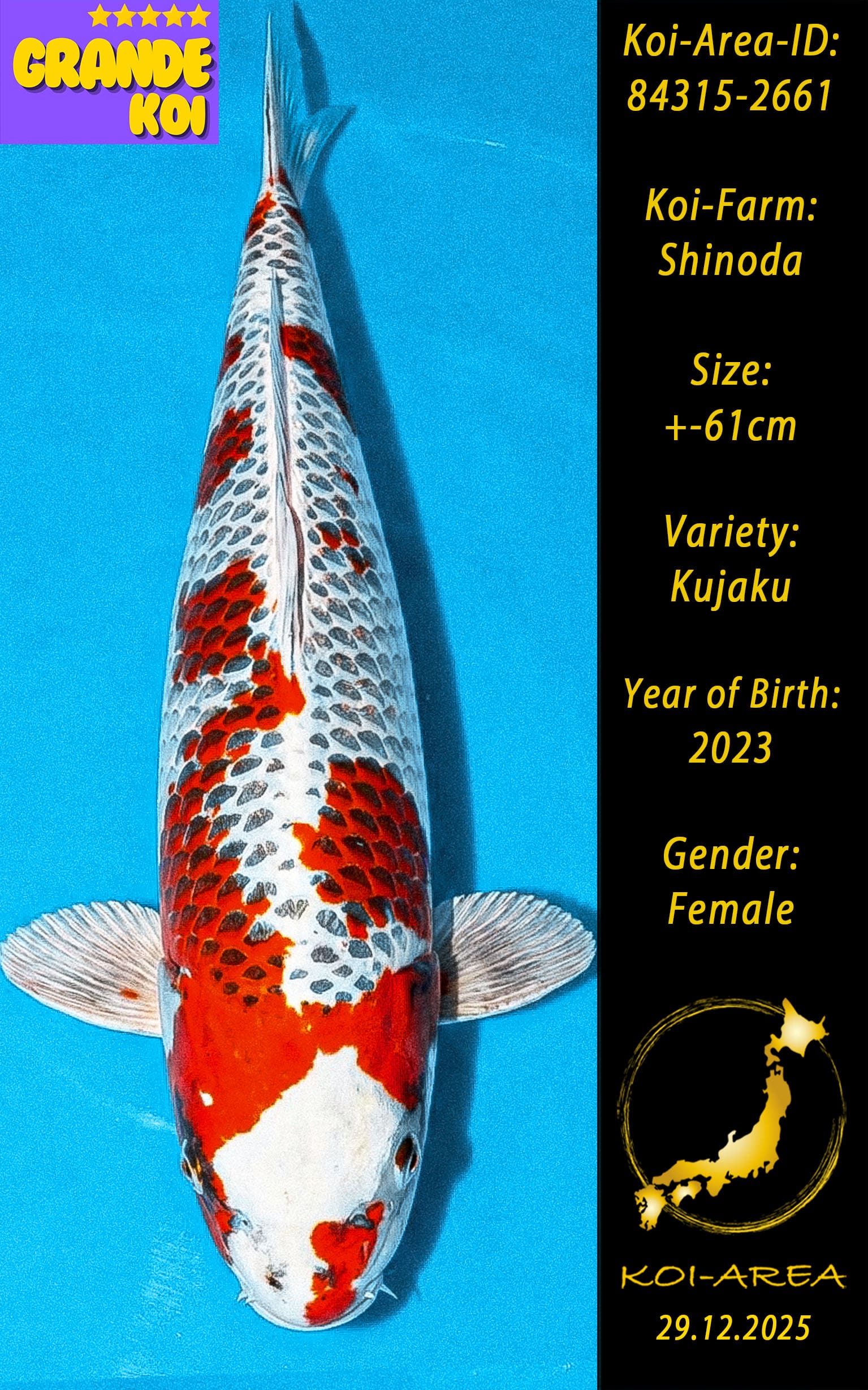 ⚠️ 🚛 🇯🇵 live aus Japan KOI – Dieser Koi schwimmt aktuell noch in Japan. Abhol-/ und Versandtermine für diesen Koi sind ab Anfang April 2026 verfügbar