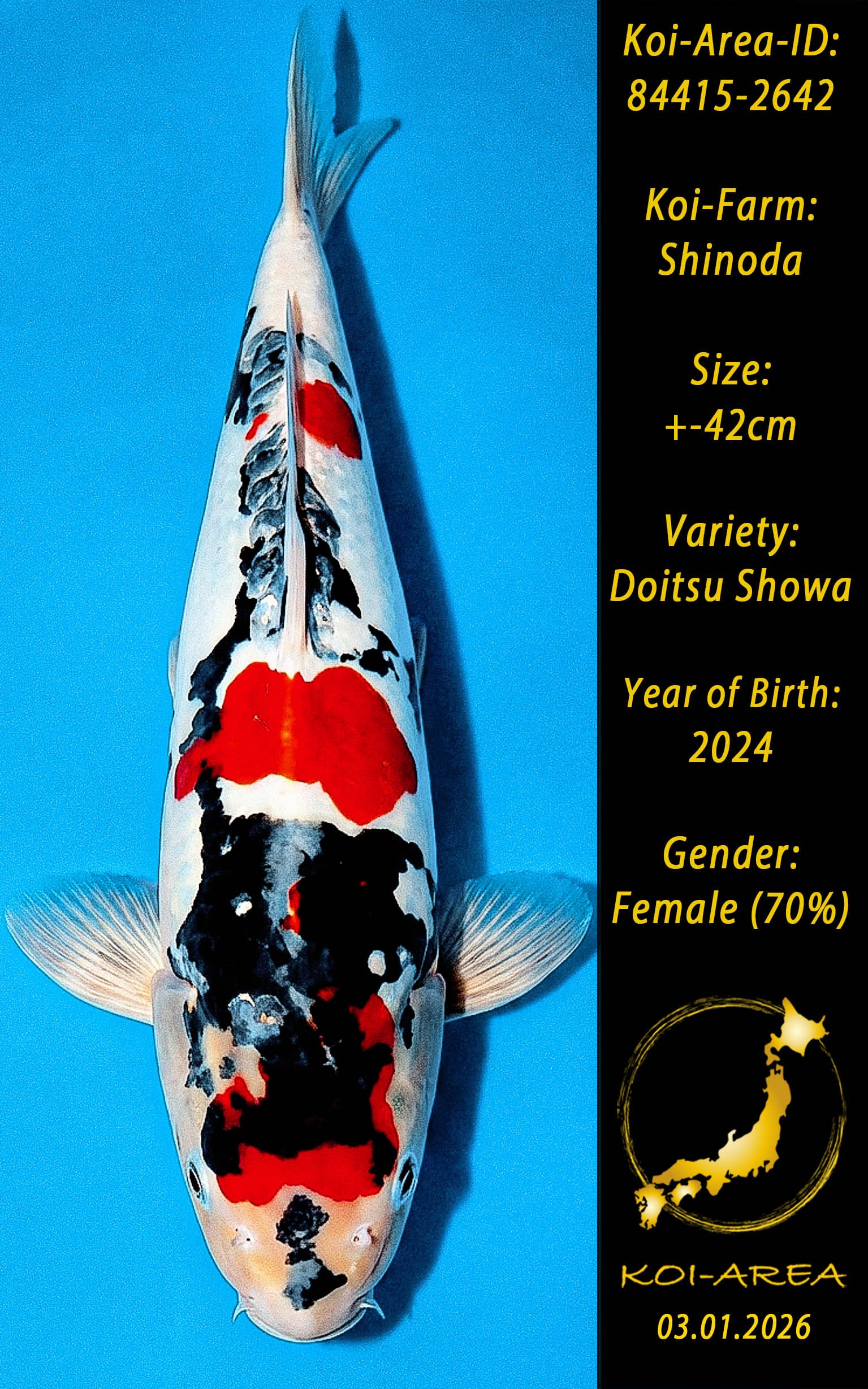 ⚠️ 🚛 🇯🇵 live aus Japan KOI – Dieser Koi schwimmt aktuell noch in Japan. Abhol-/ und Versandtermine für diesen Koi sind ab Anfang April 2026 verfügbar