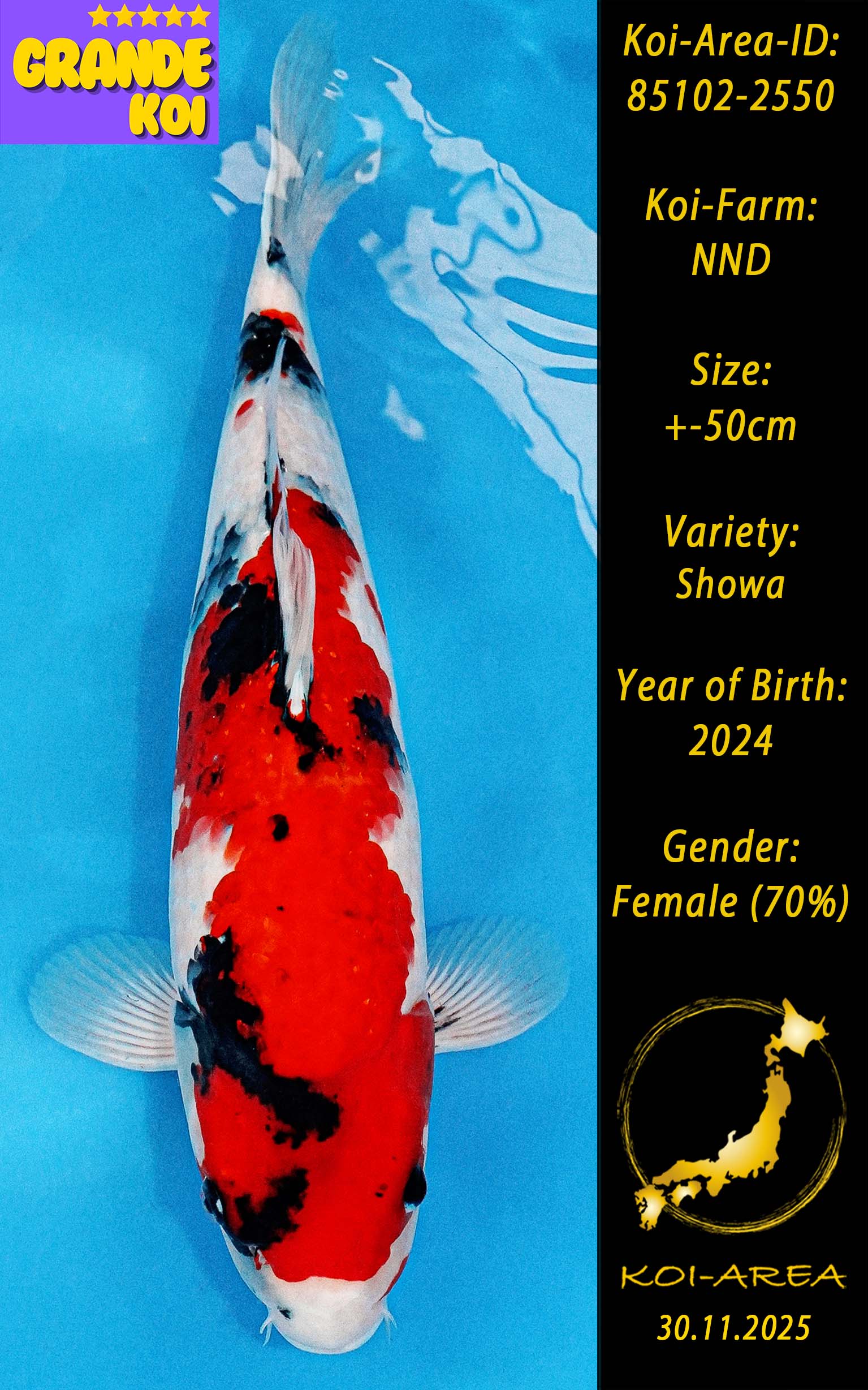 ⚠️ 🚛 🇯🇵 live aus Japan KOI – Dieser Koi schwimmt aktuell noch in Japan. Abhol-/ und Versandtermine für diesen Koi sind ab Anfang April 2026 verfügbar