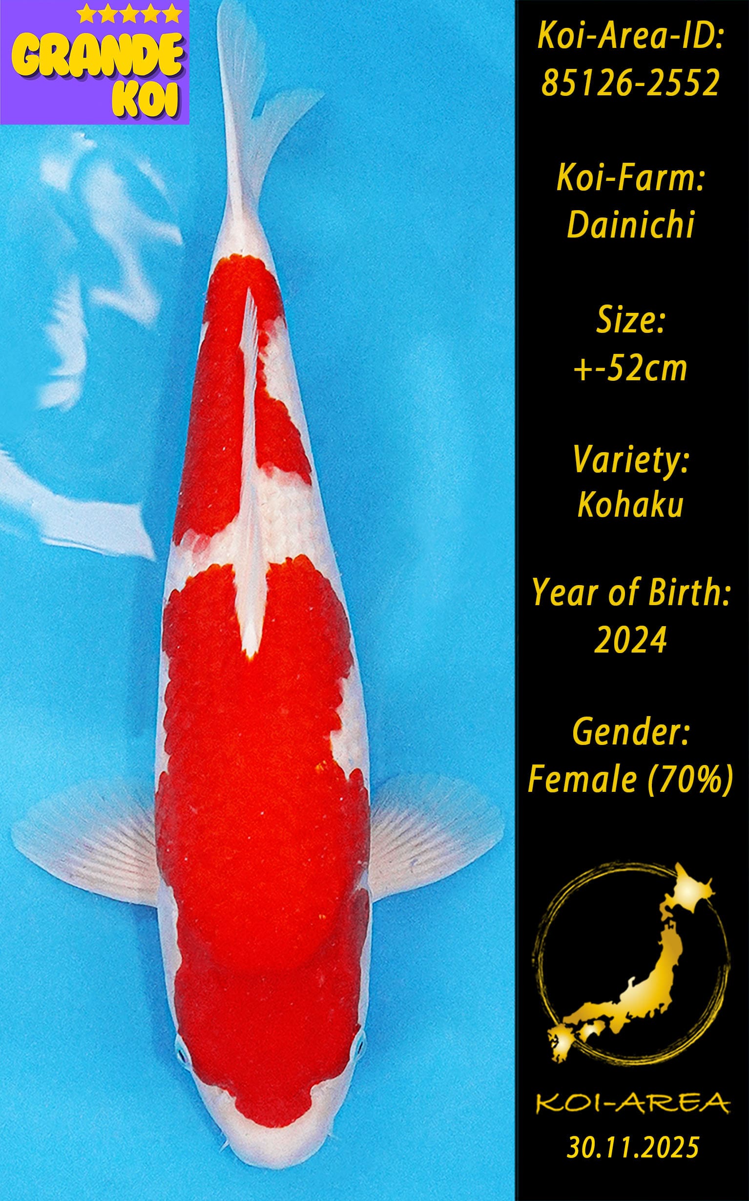 ⚠️ 🚛 🇯🇵 live aus Japan KOI – Dieser Koi schwimmt aktuell noch in Japan. Abhol-/ und Versandtermine für diesen Koi sind ab Anfang April 2026 verfügbar