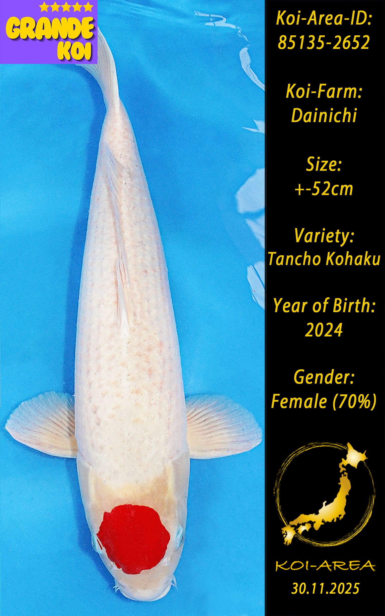 ⚠️ 🚛 🇯🇵 live aus Japan KOI – Dieser Koi schwimmt aktuell noch in Japan. Abhol-/ und Versandtermine für diesen Koi sind ab Anfang April 2026 verfügbar