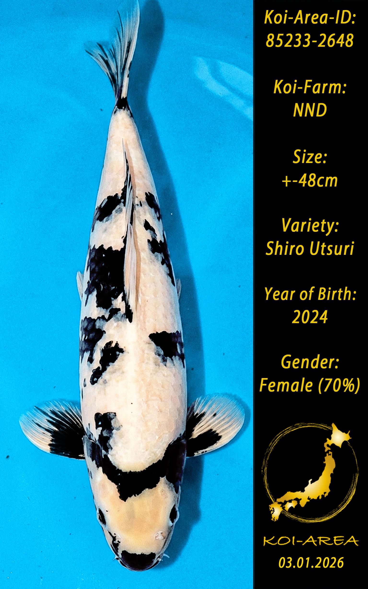 ⚠️ 🚛 🇯🇵 live aus Japan KOI – Dieser Koi schwimmt aktuell noch in Japan. Abhol-/ und Versandtermine für diesen Koi sind ab Anfang April 2026 verfügbar