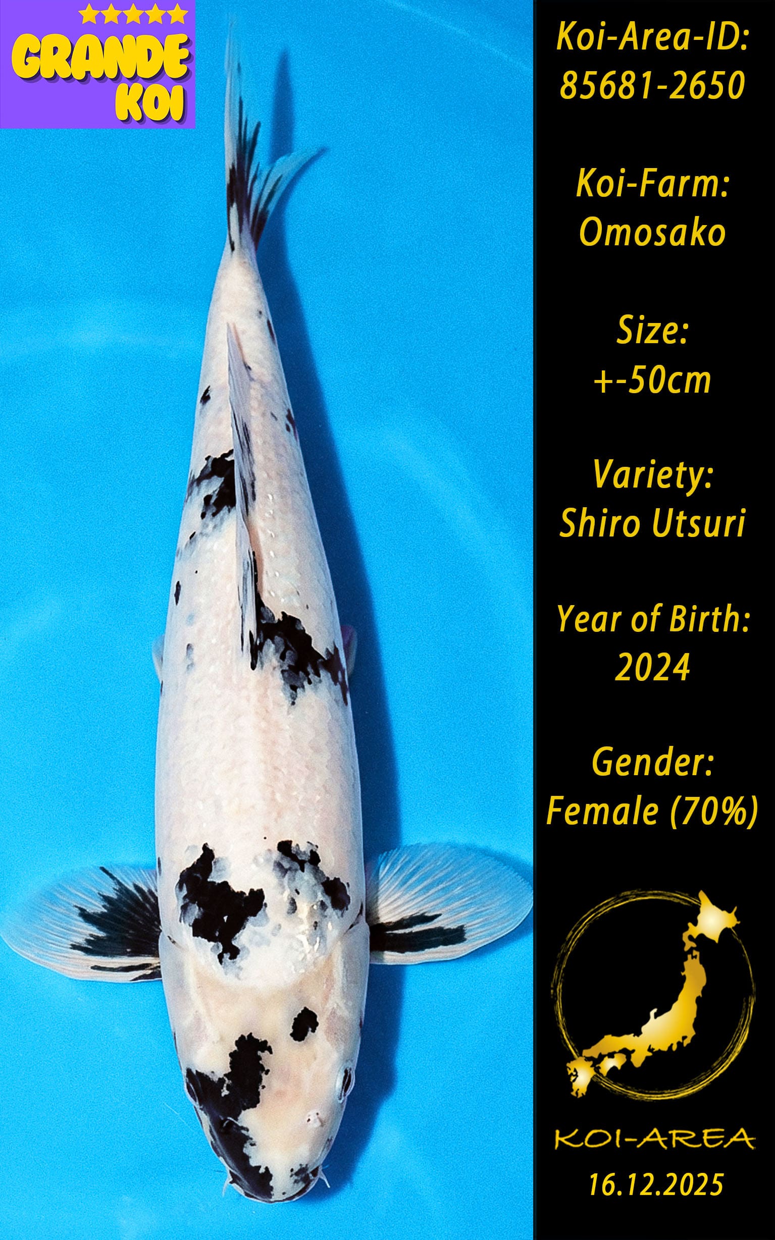 ⚠️ 🚛 🇯🇵 live aus Japan KOI – Dieser Koi schwimmt aktuell noch in Japan. Abhol-/ und Versandtermine für diesen Koi sind ab Anfang April 2026 verfügbar