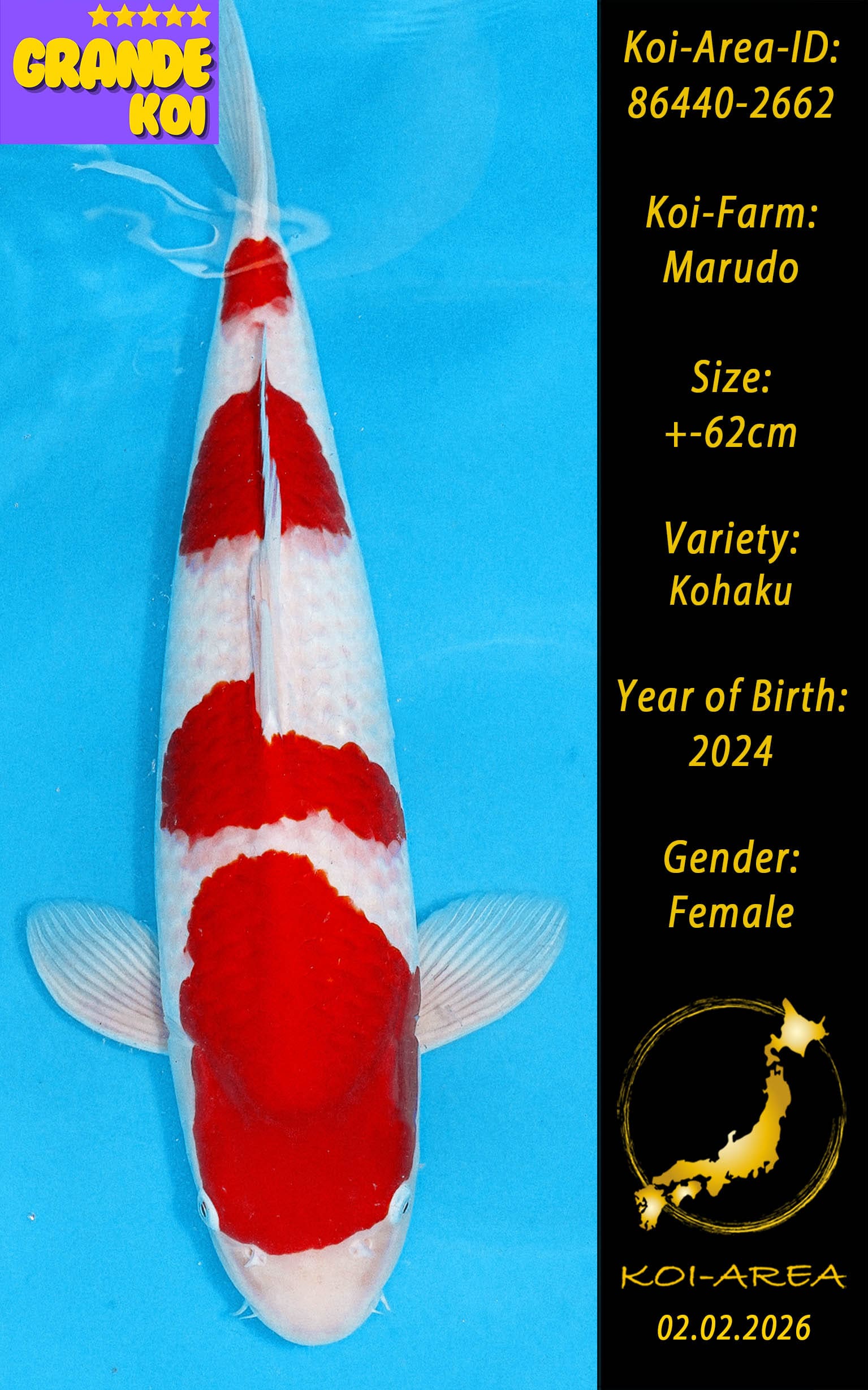 ⚠️ 🚛 🇯🇵 live aus Japan KOI – Dieser Koi schwimmt aktuell noch in Japan. Abhol-/ und Versandtermine für diesen Koi sind ab Anfang April 2026 verfügbar