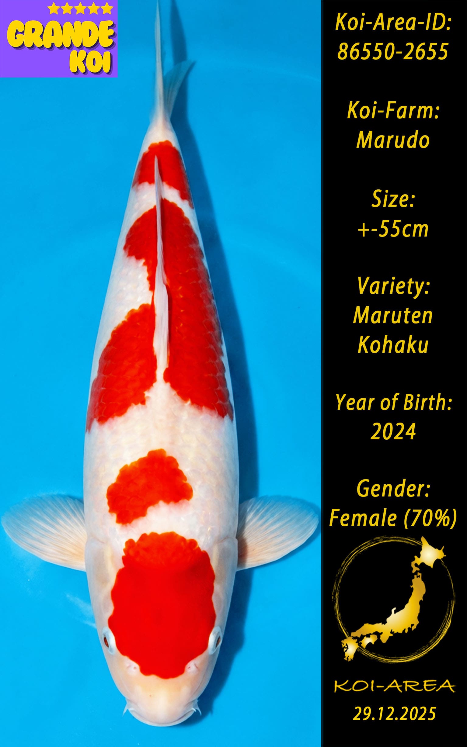 ⚠️ 🚛 🇯🇵 live aus Japan KOI – Dieser Koi schwimmt aktuell noch in Japan. Abhol-/ und Versandtermine für diesen Koi sind ab Anfang April 2026 verfügbar