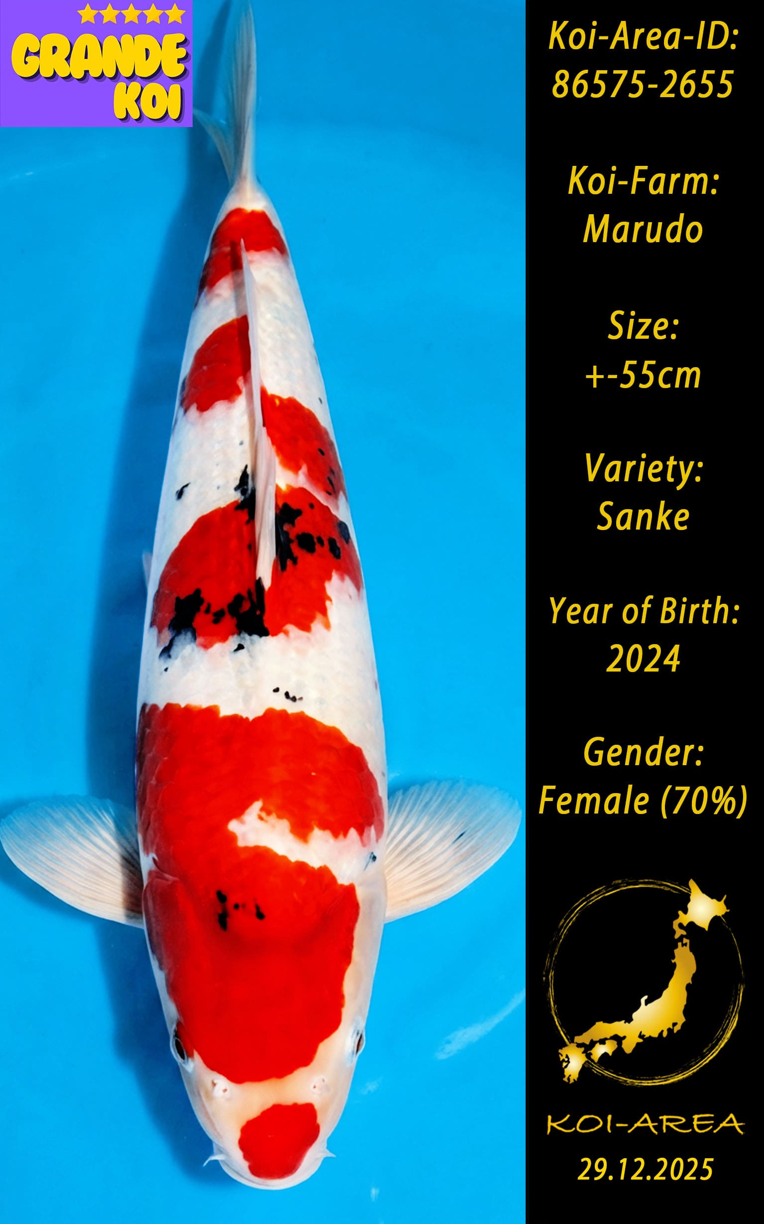 ⚠️ 🚛 🇯🇵 live aus Japan KOI – Dieser Koi schwimmt aktuell noch in Japan. Abhol-/ und Versandtermine für diesen Koi sind ab Anfang April 2026 verfügbar