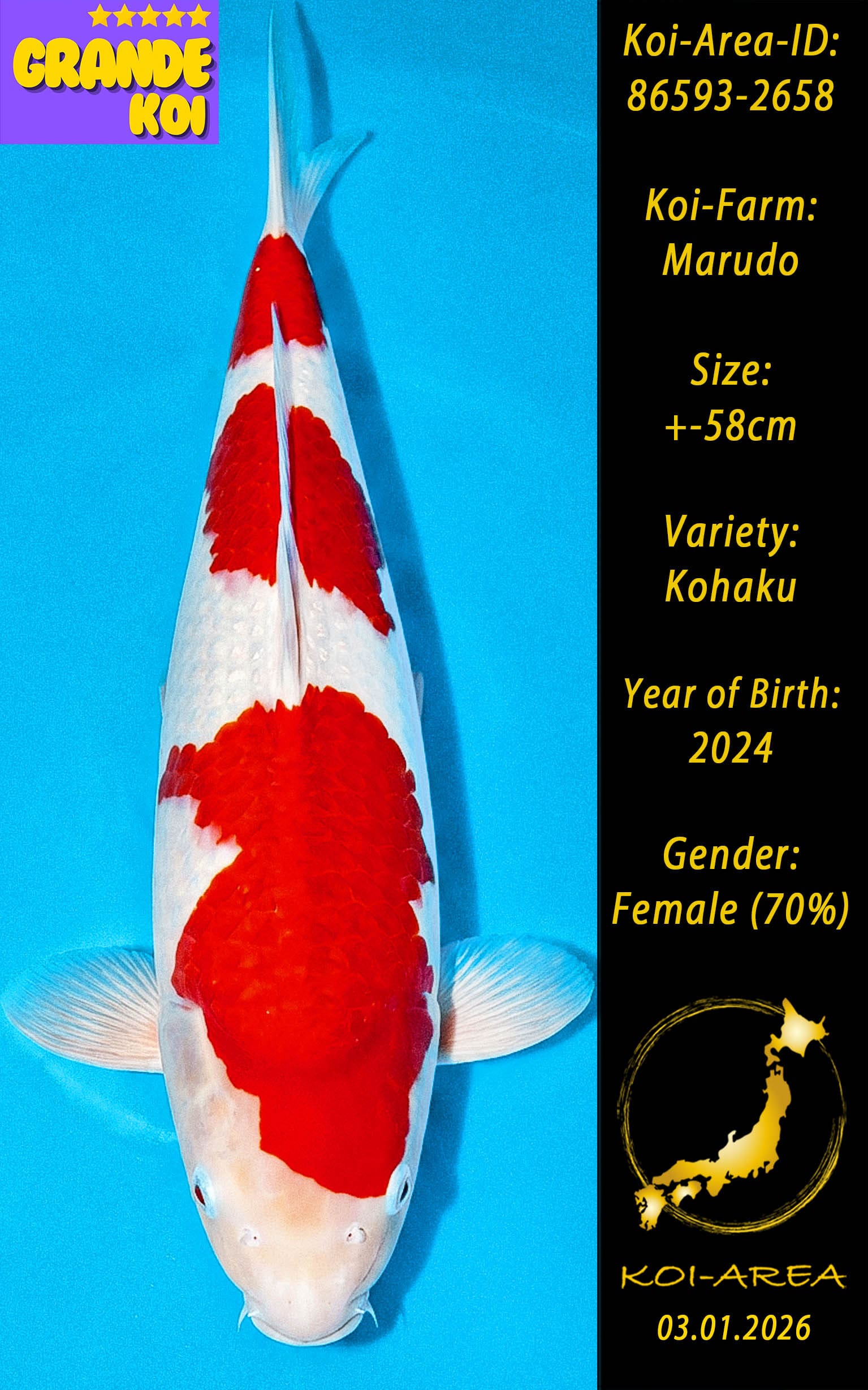 ⚠️ 🚛 🇯🇵 live aus Japan KOI – Dieser Koi schwimmt aktuell noch in Japan. Abhol-/ und Versandtermine für diesen Koi sind ab Anfang April 2026 verfügbar