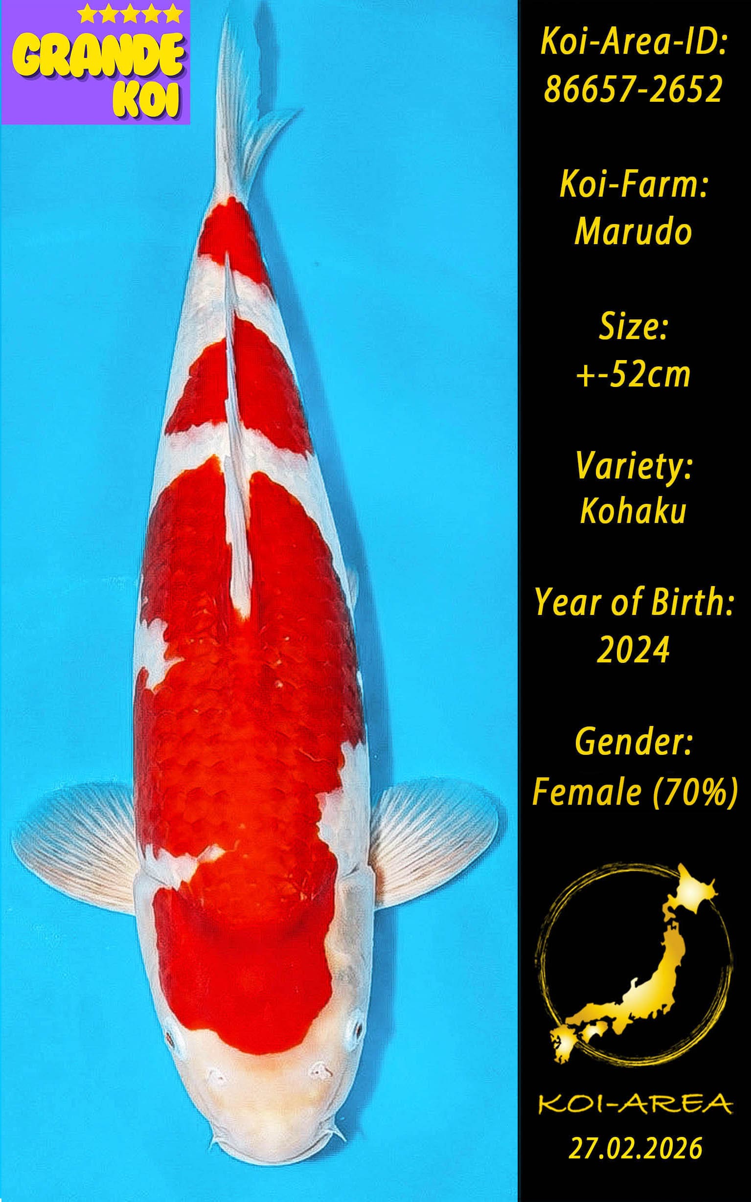 ⚠️ 🚛 🇯🇵 live aus Japan KOI – Dieser Koi schwimmt aktuell noch in Japan. Abhol-/ und Versandtermine für diesen Koi sind ab Anfang April 2026 verfügbar