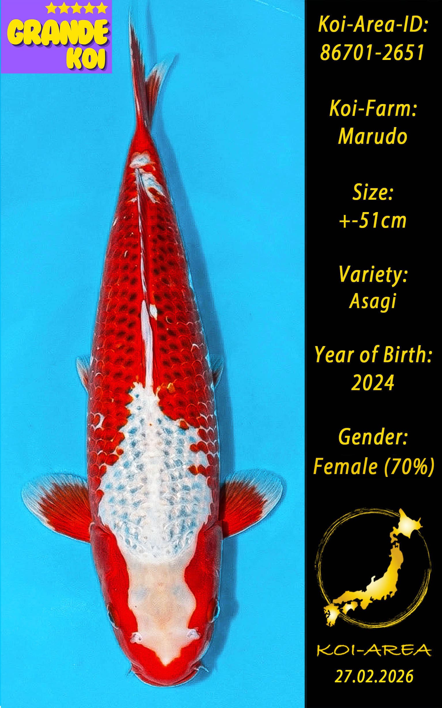 ⚠️ 🚛 🇯🇵 live aus Japan KOI – Dieser Koi schwimmt aktuell noch in Japan. Abhol-/ und Versandtermine für diesen Koi sind ab Anfang April 2026 verfügbar