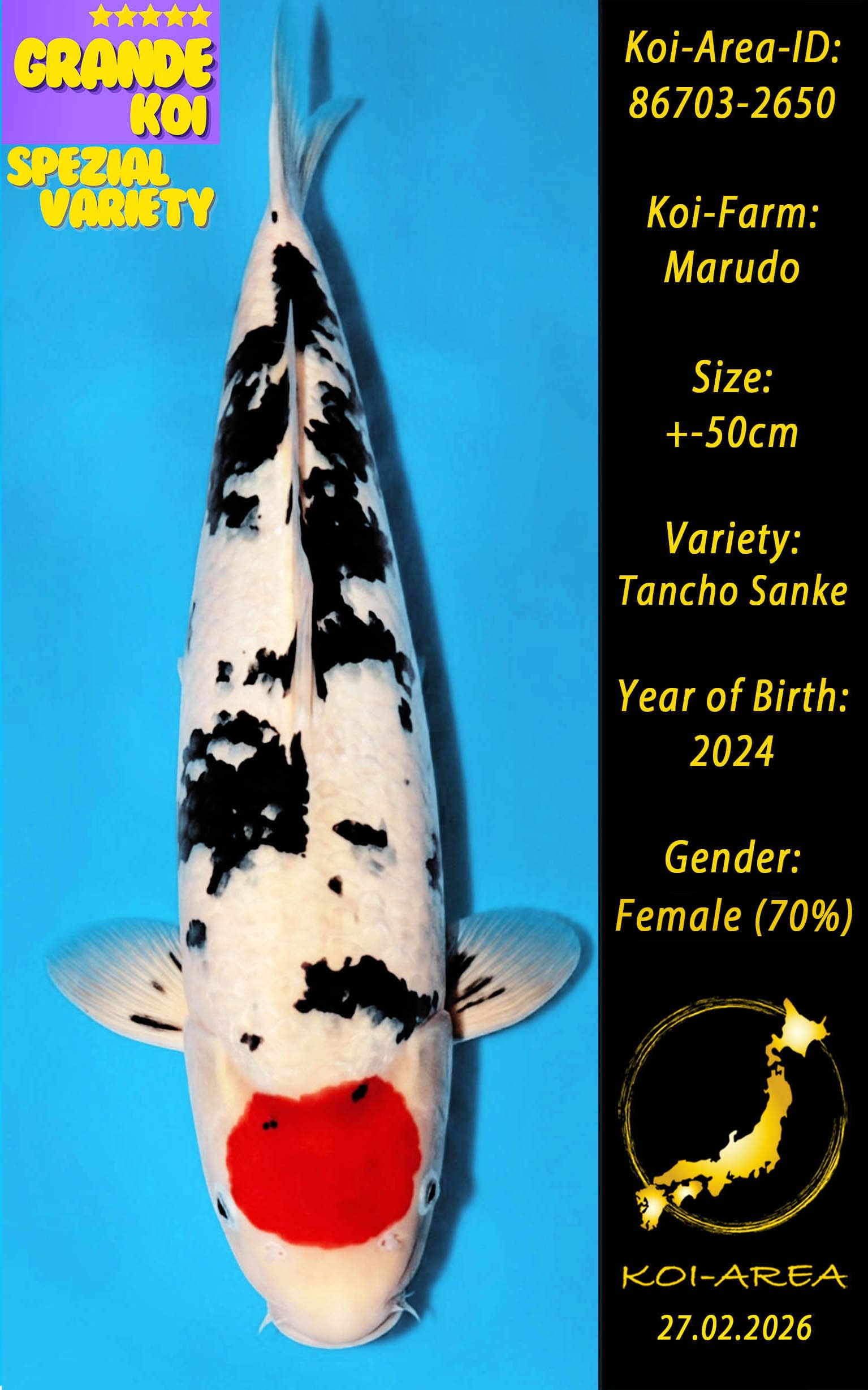 ⚠️ 🚛 🇯🇵 live aus Japan KOI – Dieser Koi schwimmt aktuell noch in Japan. Abhol-/ und Versandtermine für diesen Koi sind ab Anfang April 2026 verfügbar