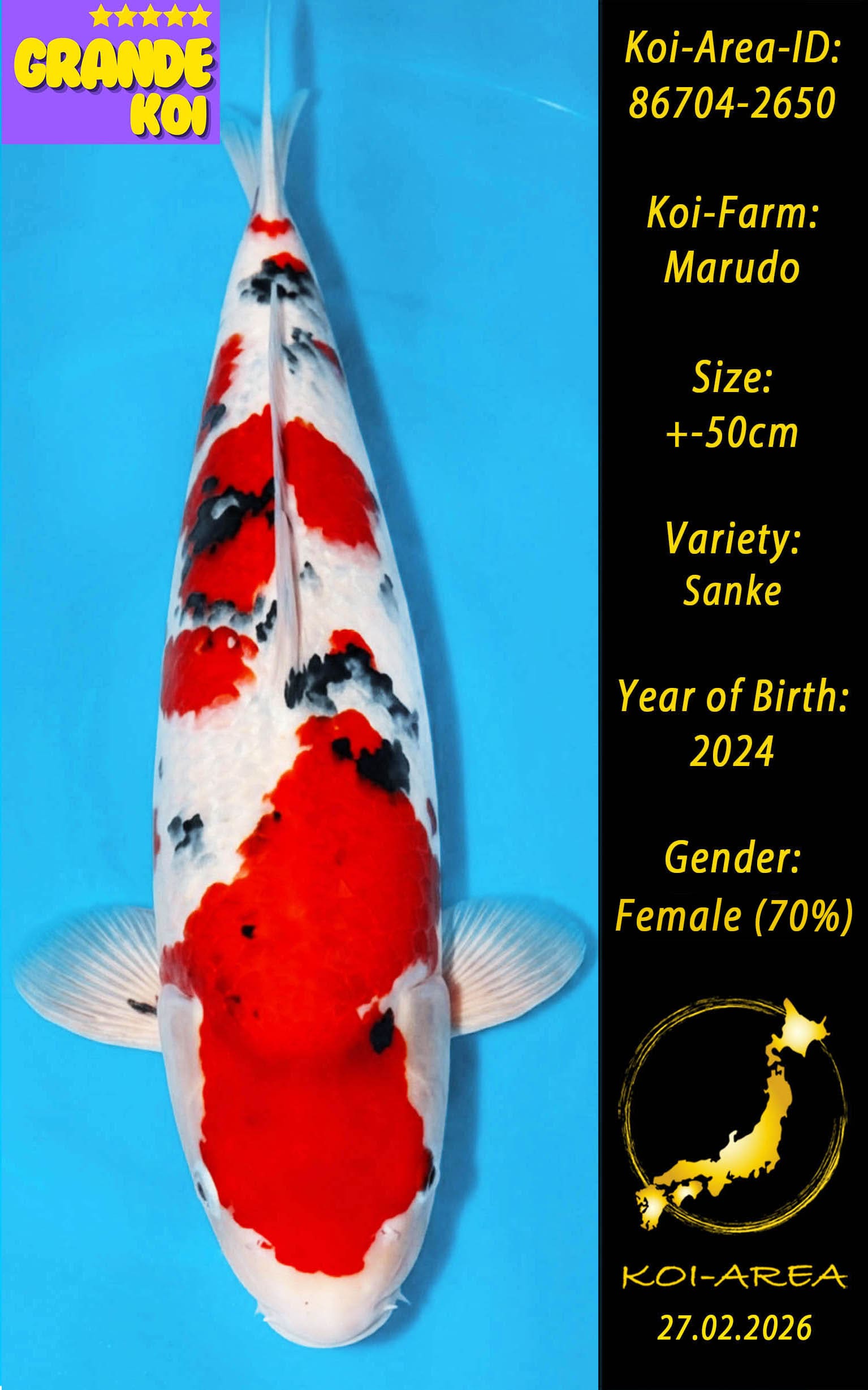⚠️ 🚛 🇯🇵 live aus Japan KOI – Dieser Koi schwimmt aktuell noch in Japan. Abhol-/ und Versandtermine für diesen Koi sind ab Anfang April 2026 verfügbar