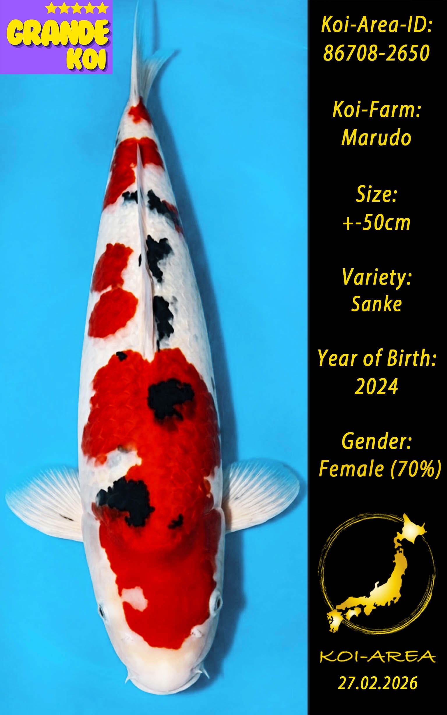 ⚠️ 🚛 🇯🇵 live aus Japan KOI – Dieser Koi schwimmt aktuell noch in Japan. Abhol-/ und Versandtermine für diesen Koi sind ab Anfang April 2026 verfügbar