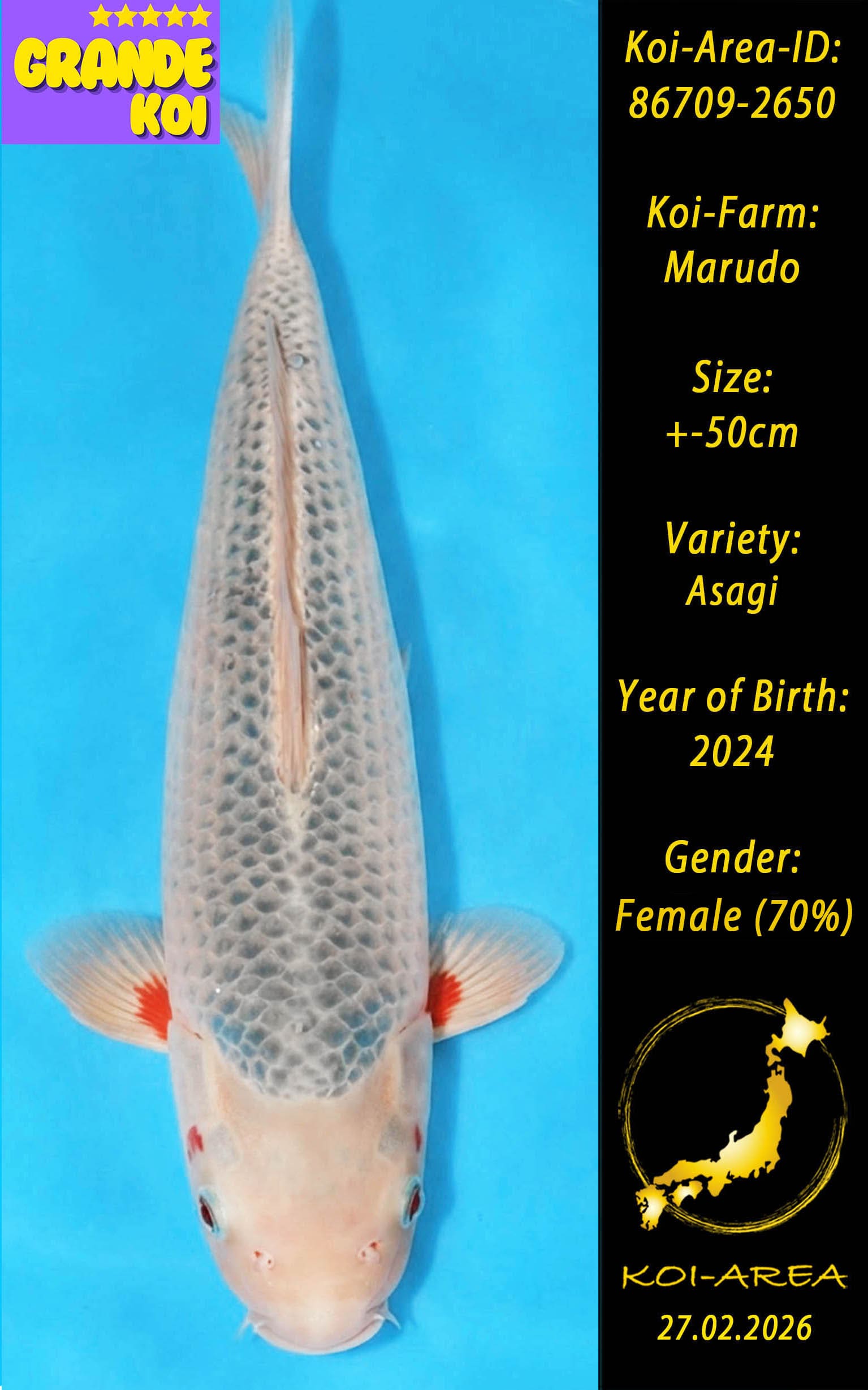 ⚠️ 🚛 🇯🇵 live aus Japan KOI – Dieser Koi schwimmt aktuell noch in Japan. Abhol-/ und Versandtermine für diesen Koi sind ab Anfang April 2026 verfügbar