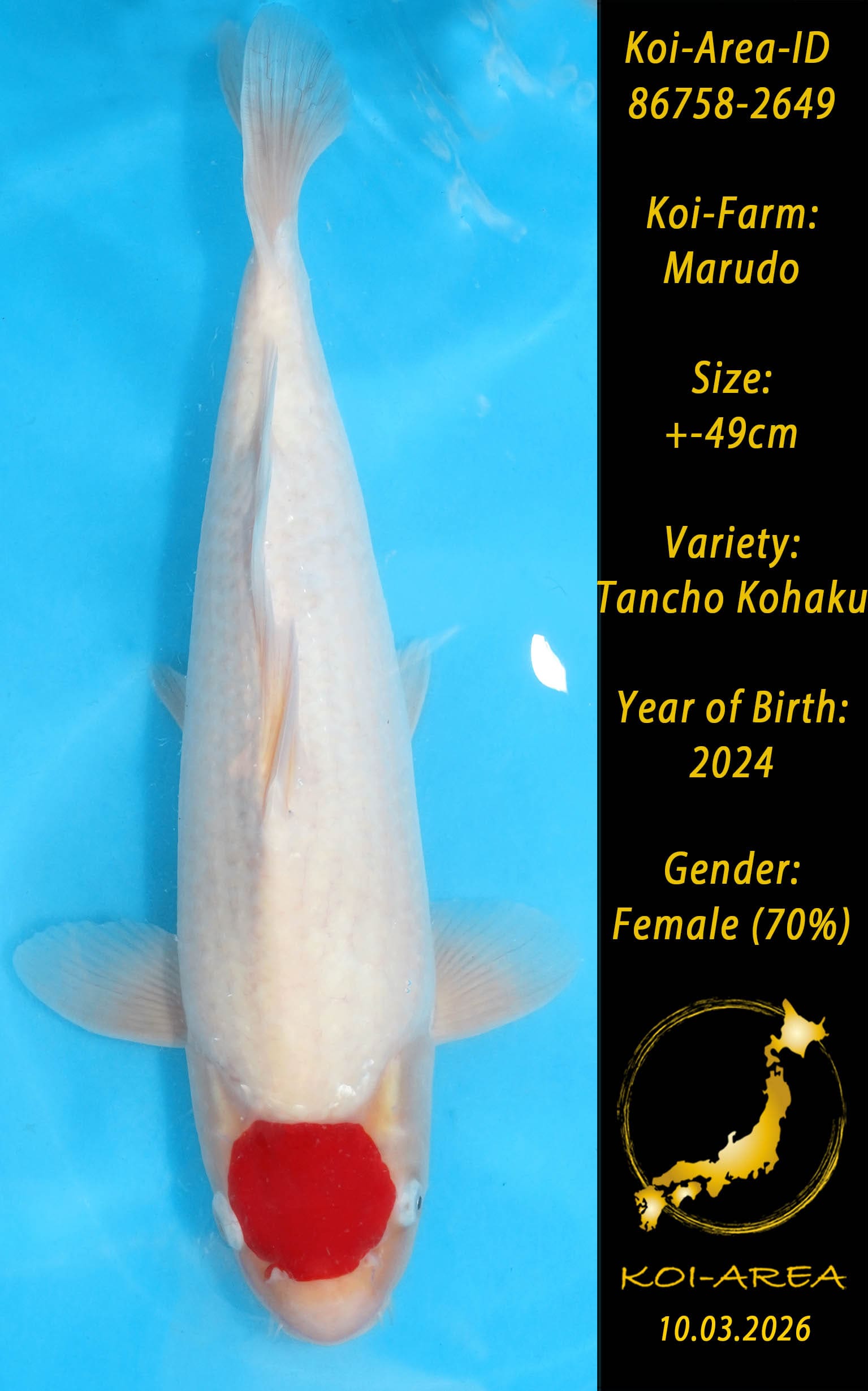 Nach erfolgreicher Auktion erscheint Ihr Koi in Ihrem Kundenkonto. Ein Zertifikat kann beim Züchter angefragt und gegen eine Gebühr dazu erworben werden.